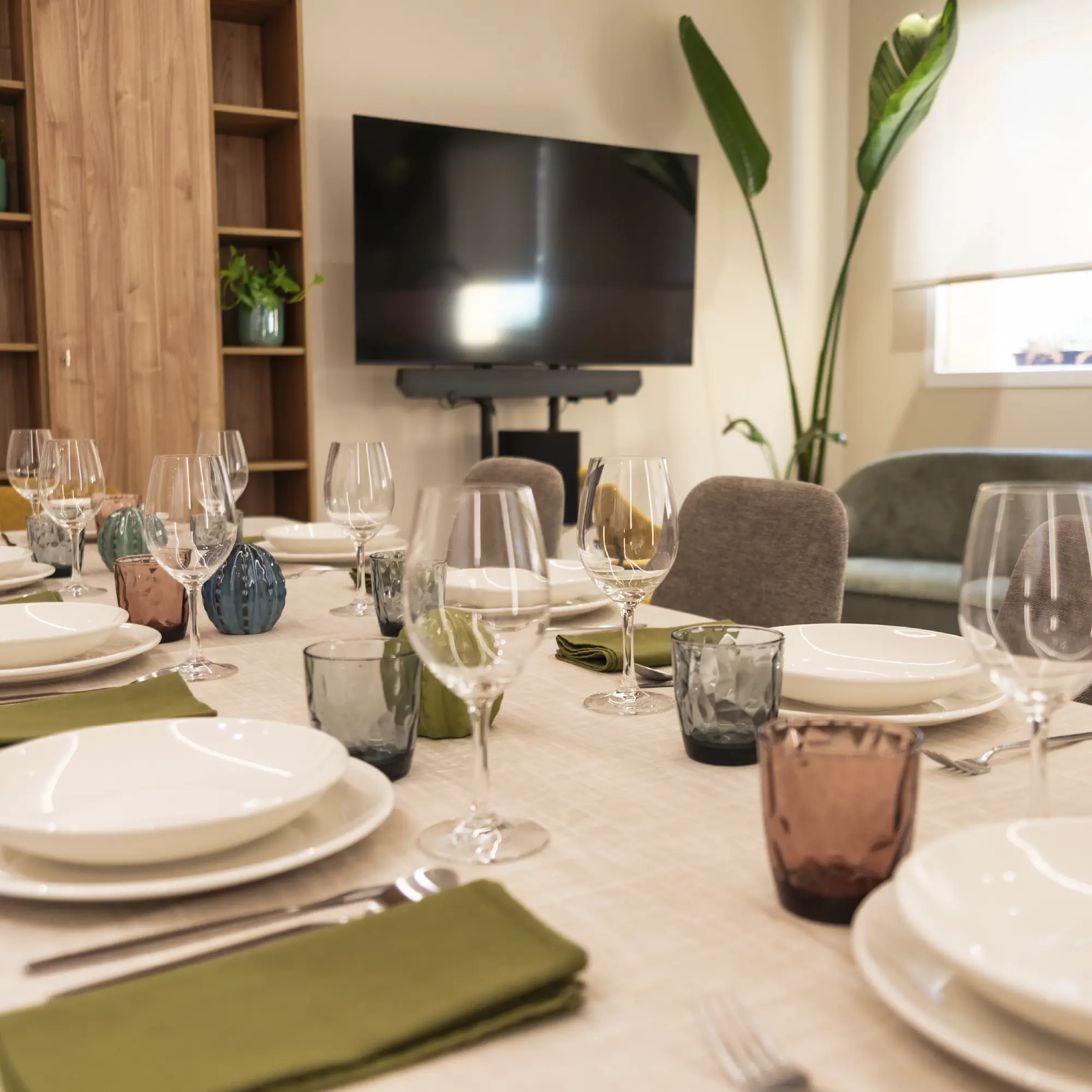 Karpio15 es el espacio perfecto para tus comidas y cenas de empresa, reuniones privadas o encuentros de equipo. El salón combina elegancia, privacidad y versatilidad, permitiéndote crear un ambiente profesional o más relajado según necesite tu organización.